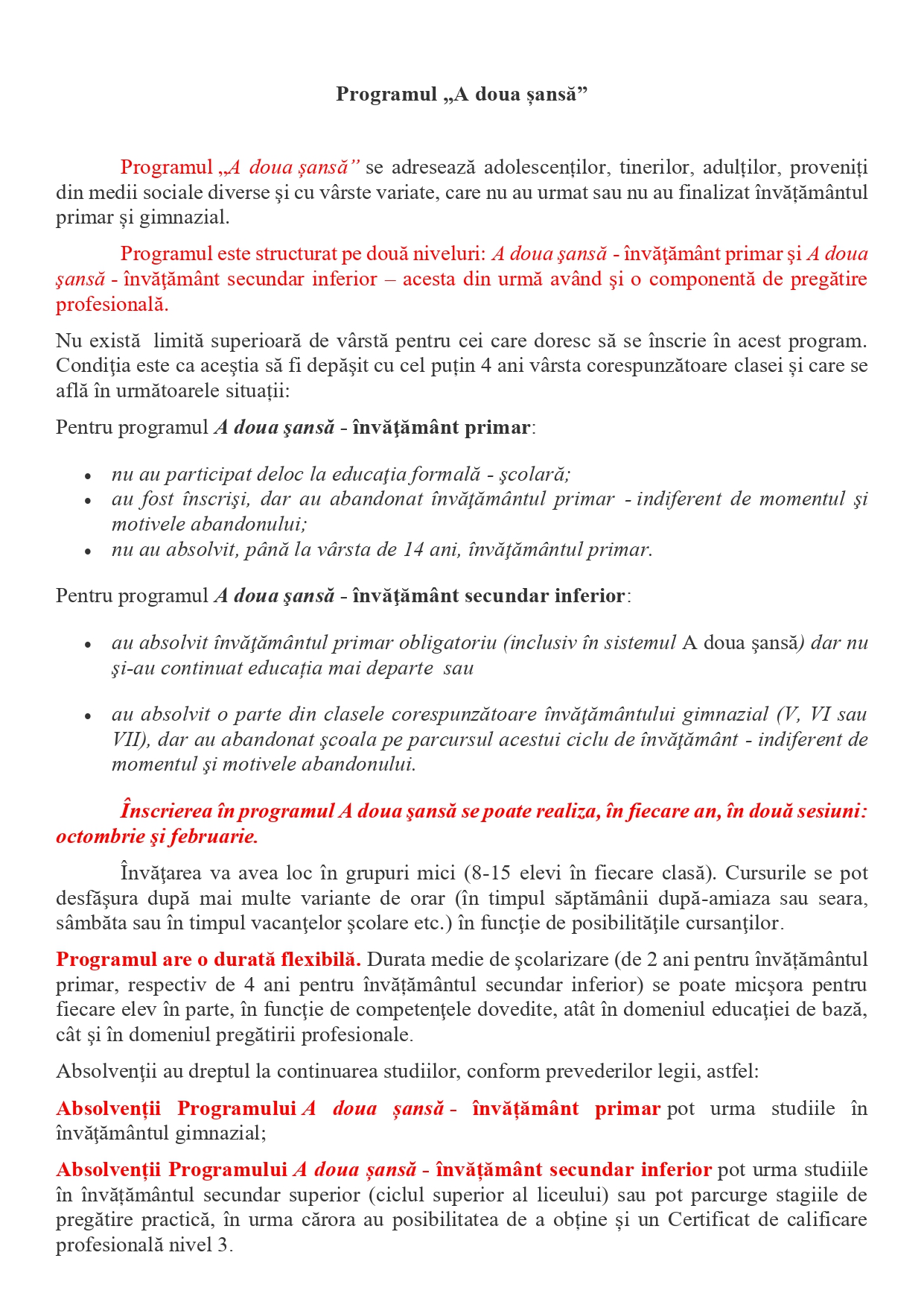 PROGRAMUL „ A DOUA SANSA” 2023-2024