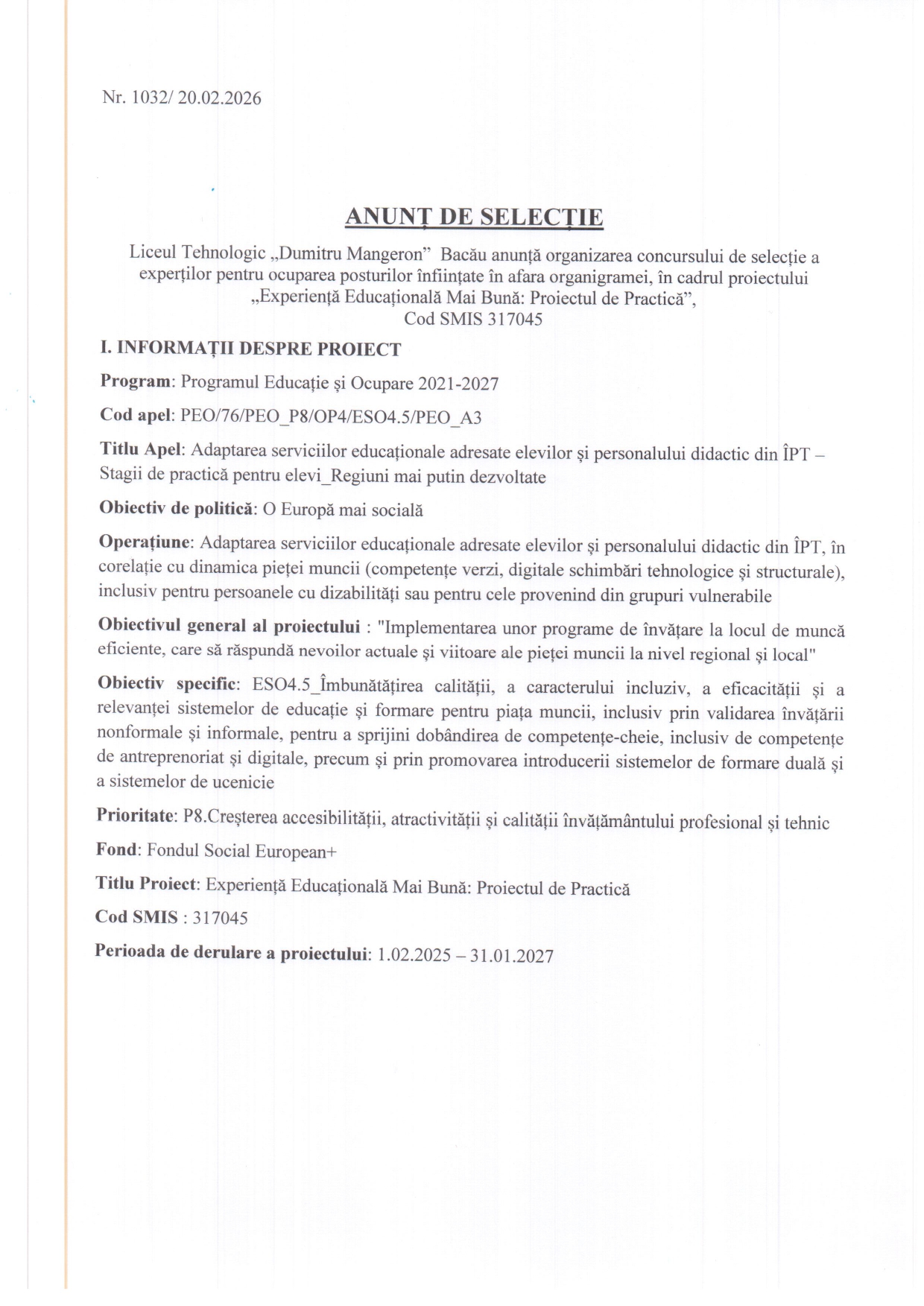 Viitorul se construiește prin alegeri asumate: Orientare în carieră la Liceul Tehnologic „Dumitru Mangeron”Pe data de 13 martie 2026, holurile...