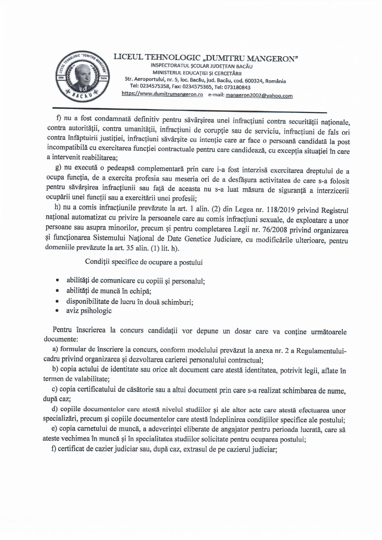 PLANURI MANAGERIALE - AN SCOLAR 2023-2024REGULAMENTE INTERNE