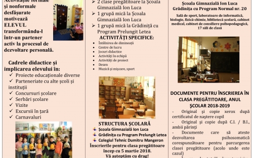 INSCRIERI IN CLASA PREGATITOARE 2018-2019 - ION LUCA